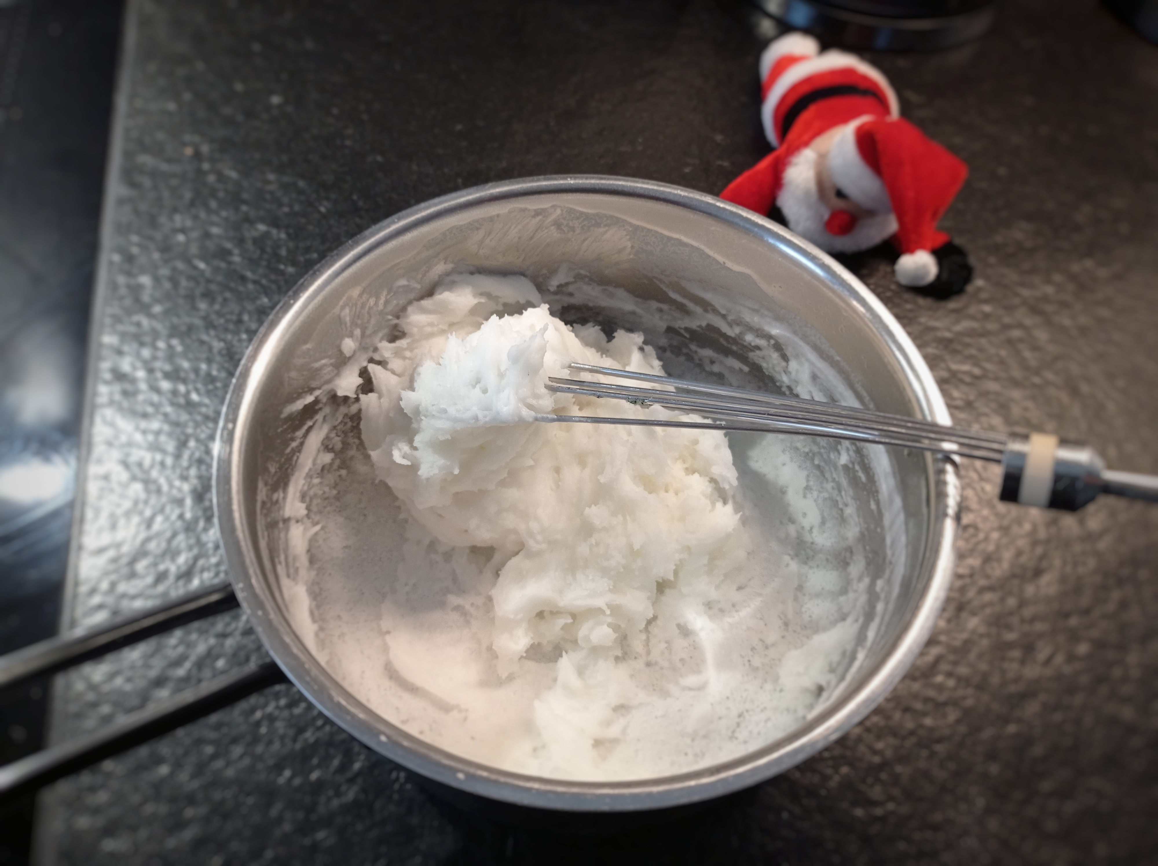 - Nach ca. 15 Minuten ist die Masse so weit abgekühlt, dass man ihr sie zu einer Kugel formen und weiter verarbeiten könnt.